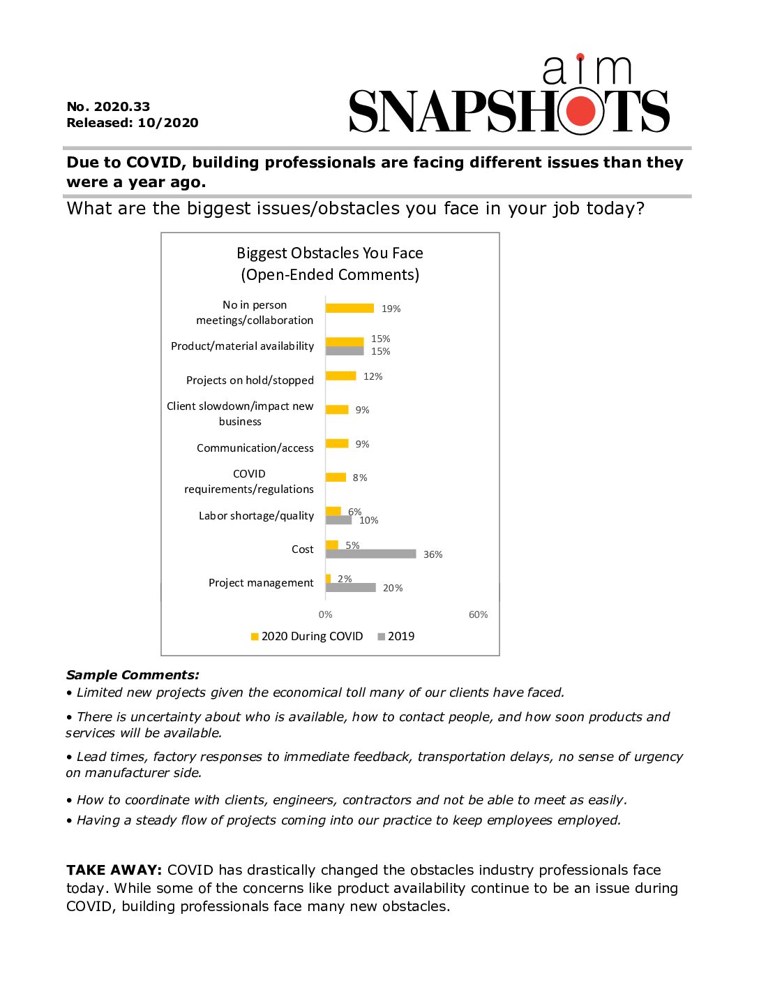 Due to COVID, building professionals are facing different issues than they were a year ago.